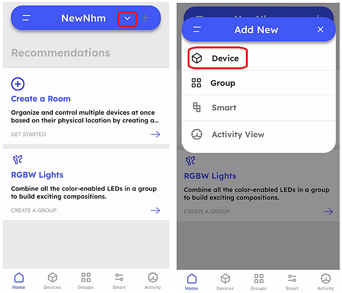Open your LEXI app, click the down arrow next to your Location/Gateway name and click Device.