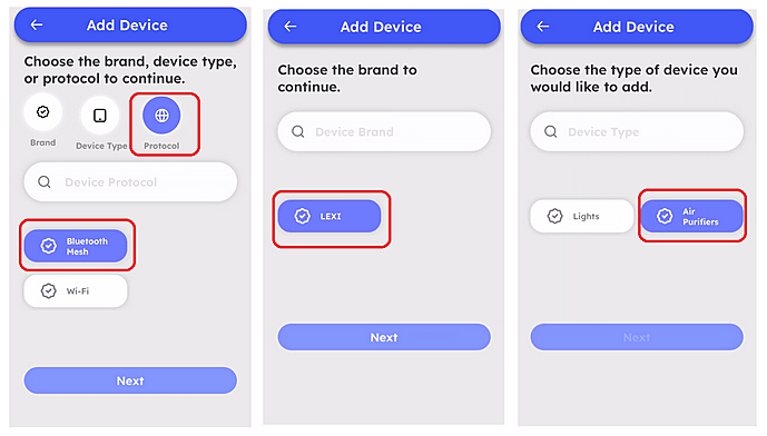 Power on your Smart Air Purifier and ensure it is in the pairing mode (LED light flashing).