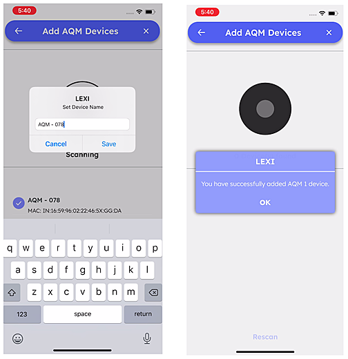 Open your LEXI app, click Add a Device and select LEXI. You can also add your Smart Air Quality Monitor by clicking the + sign under Devices tab.