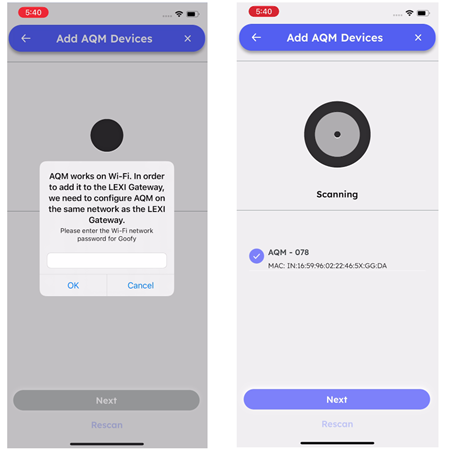 - Please ensure you add your AQM on the same Wi-Fi network which is configured on your Gateway.