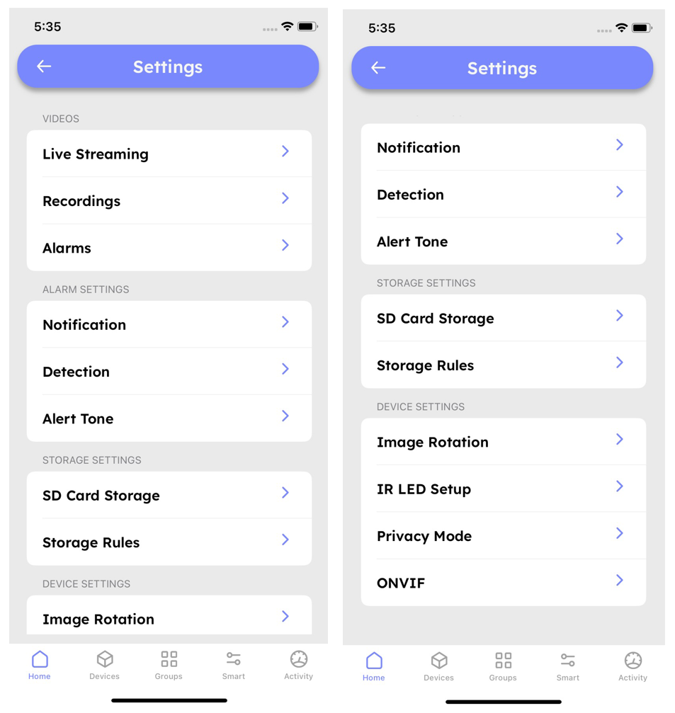 Storage Rules: To setup storage rules (SD card and Cloud) for your Smart Camera.