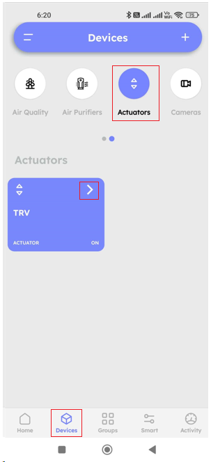 Open your LEXI app and navigate to Devices. Click on Actuators to see all the added TRVs.